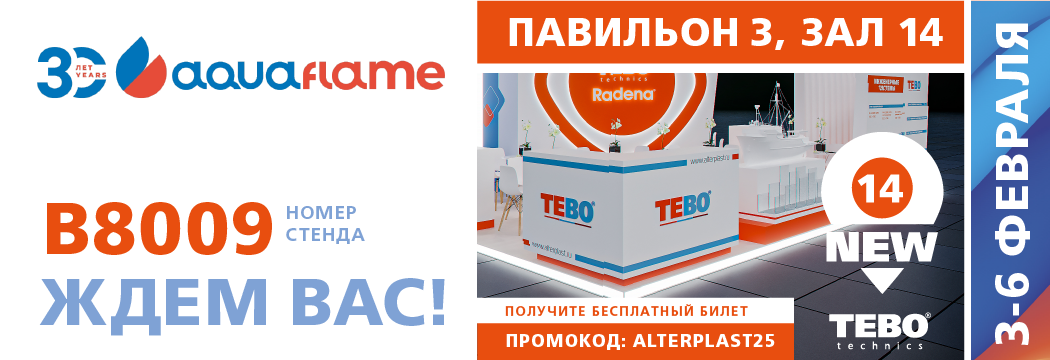 Приглашаем вас посетить стенд компании TEBO на самой крупной в России и странах Восточной Европы выставке комплексных инженерных решений Aquaflame 2026.